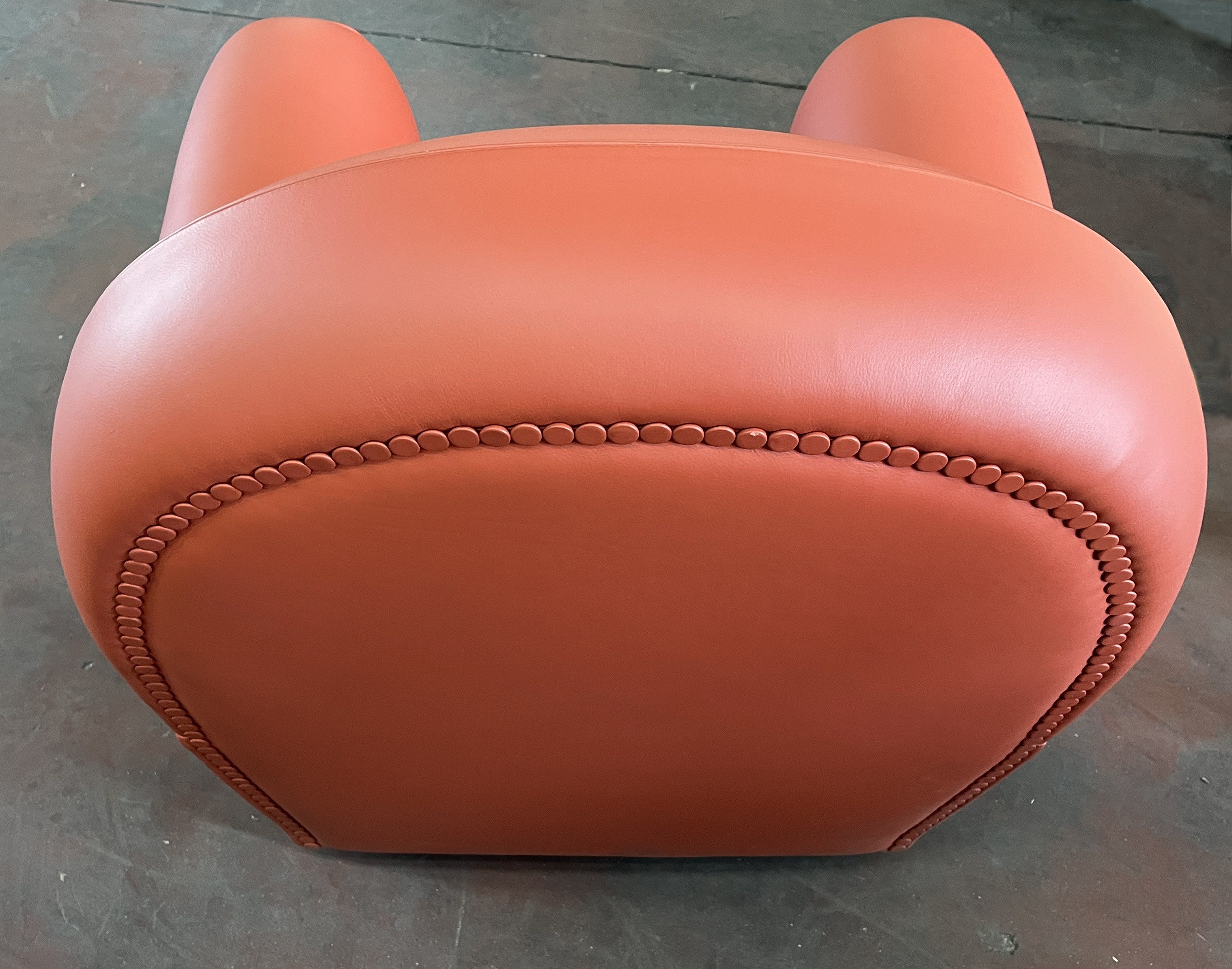 Poltrona Vanity in pelle rosso chiaro, ignifuga in Classe 1 IM.