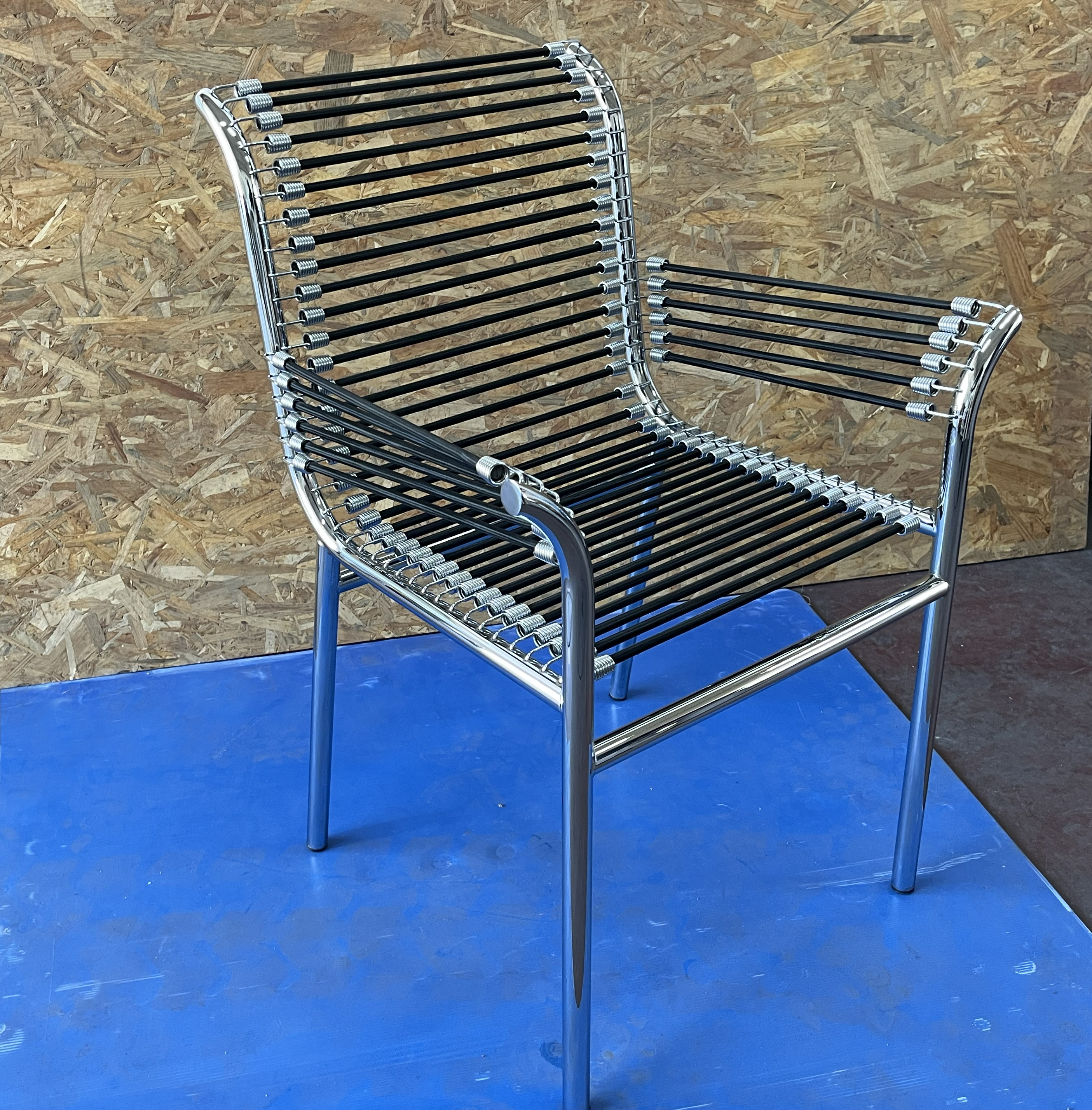 schienale e braccioli a corde elastiche riverstite in cotone nero.