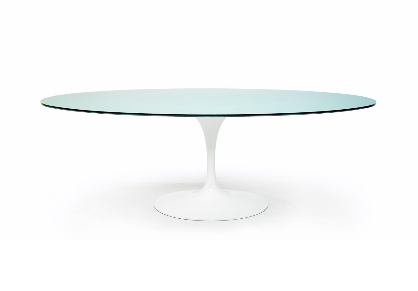 Tavolo Tulip in vetro, omaggio a Eero Saarinen.